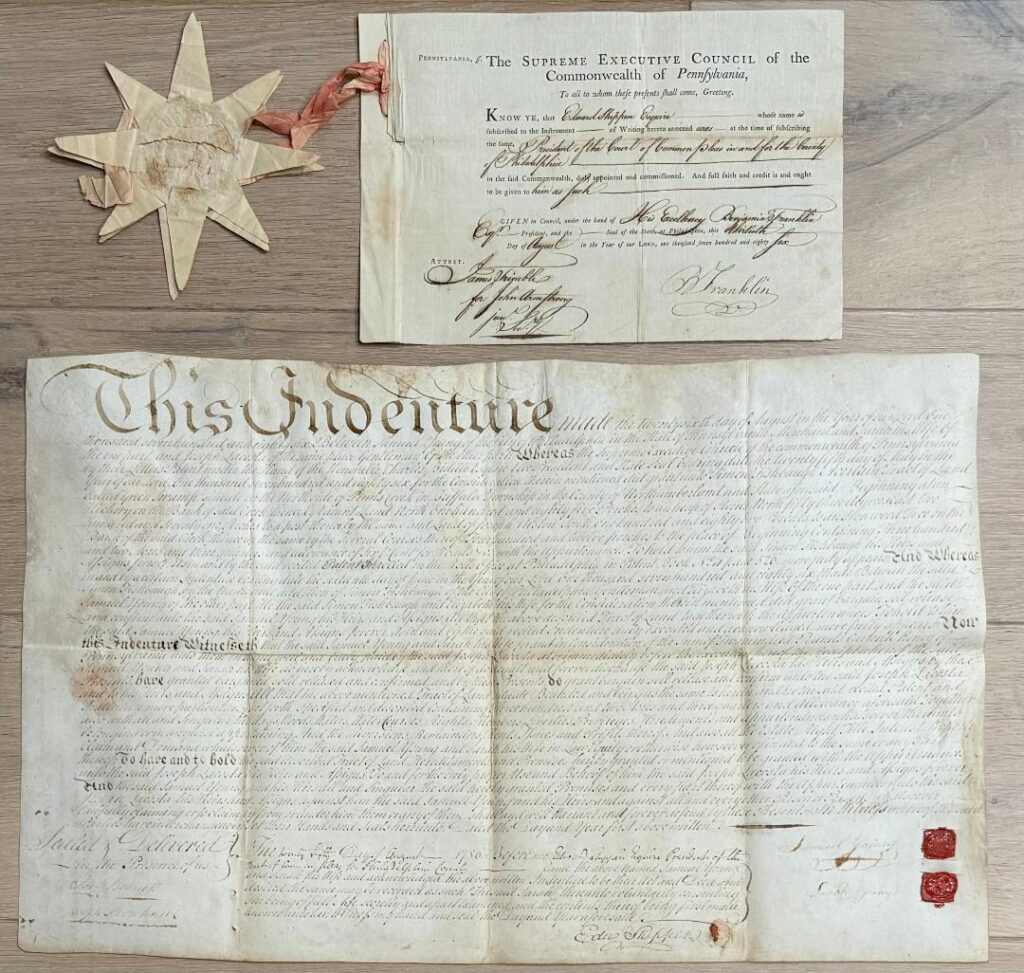 A complete nine volume set containing “A Collection of Authentick Records, State Papers, Debates, and Letters and Other Notices of Public Affairs” which forms “A Documentary History of The Origin and Progress of the North American Colonies; of the Causes and Accomplishment of the American Revolution; and of The Constitution of Government for the United States, to The Final Ratification Thereof” from 1688 through 1787. Prepared and published by the authority of an Act of Congress on Mar 2-3, 1833, by Peter Force, Washington, Apr 1848. Bound in half calf and marbled boards, each 9 x 14 inches.